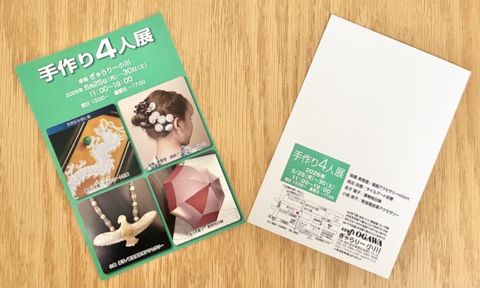 ジャンルが違う4人の手作り作家が集まって、作品展示および販売を行います。