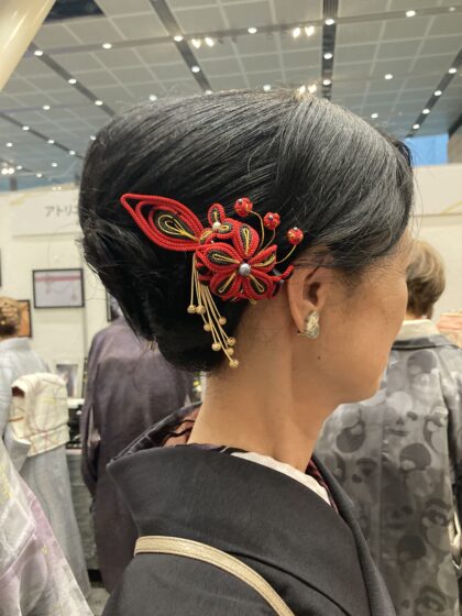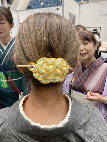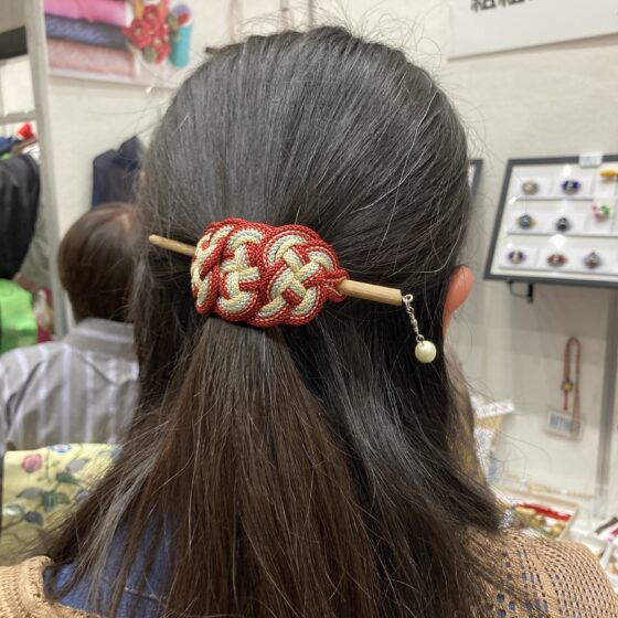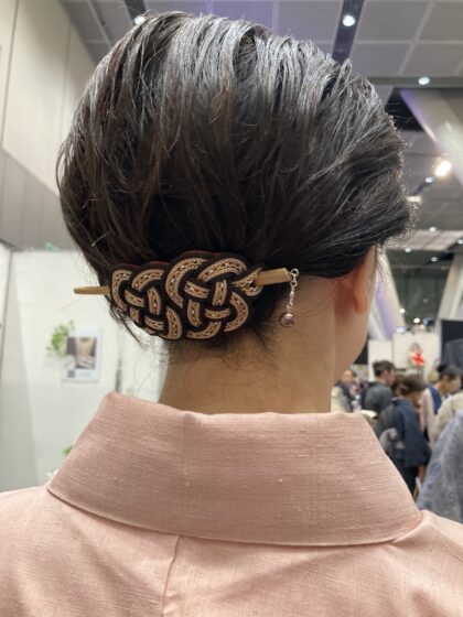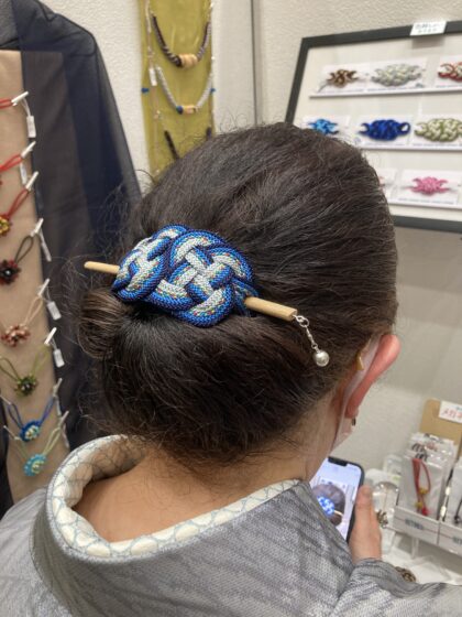以前お買い上げくださったかたも、髪に飾ってブースににいらしてくださいました。