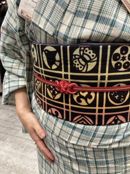 こちらの帯留、金具を使っていないので吸い付くように帯にピッタリおさまってくれて、気がつくと「帯留どこに行った〜?」と捜索する”帯留あるある″がありません♪