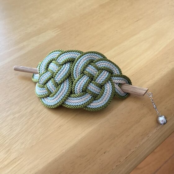 シックな色合わせの本体に、螺鈿細工の漆塗りかんざし棒をお選びくださいました。